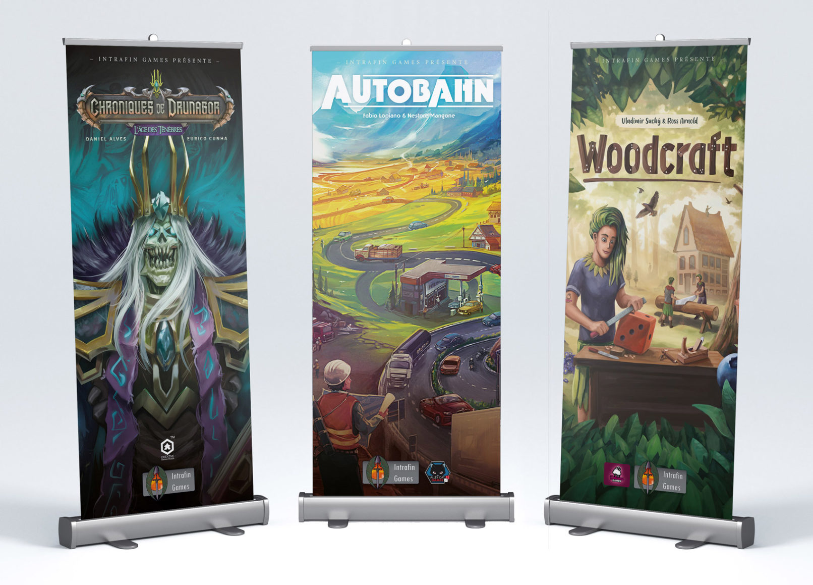 Réalisation d’éléments de communication pour Intrafin, distributeur de jeux et accessoires, basé en Belgique.